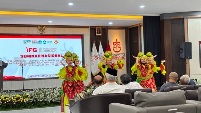 Jakarta, 14 Maret 2025 – Sekolah Tinggi Ilmu Hukum (STIH) Adhyaksa bekerja sama dengan Indonesia Financial Group (IFG) sukses menyelenggarakan Seminar Nasional bertajuk “Perlindungan Hukum dan Strategi Penguatan Regulasi dan Tata Kelola Keuangan: Asuransi, Pasar Modal, dan Dana Pensiun dalam Stabilitas Ekonomi”, yang berlangsung di Auditorium Zamrud Khatulistiwa, Kampus STIH Adhyaksa.