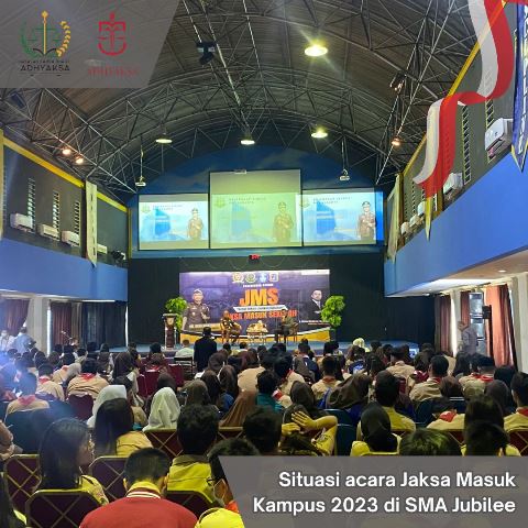 Pada 9 Agustus 2023, STIH Adhyaksa kembali diberikan kesempatan pada acara Jaksa Masuk Sekolah (KEJATI DKI. Jakarta) 2023 di SMA Jubilee, yang dihadiri oleh siswa dari 100 SMA di Jakarta Utara. Pada kesempatan ini generasi muda kita dihimbau oleh Kepala Kejaksaan Tinggi DKI. Jakarta, Bapak Dr. Reda Manthovani, S.H., LL.M. (Dewan Pembina Yayasan Karya Bhakti Adhyaksa & Dosen Kehormatan STIH Adhyaksa) untuk tidak ceroboh dalam menggunakan teknologi media digital khususnya sosial media yang mana hal ini sangat rentan untuk melanggar hukum pasal 27 & pasal 28 UU ITE.