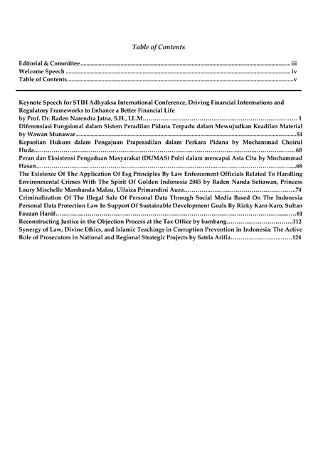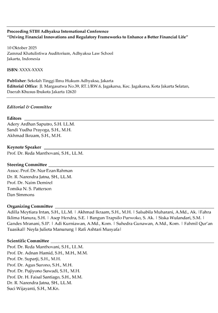 - Title: Proceeding STIH Adhyaksa International Conference “Driving Financial Innovations and Regulatory Frameworks to Enhance a Better Financial Life”